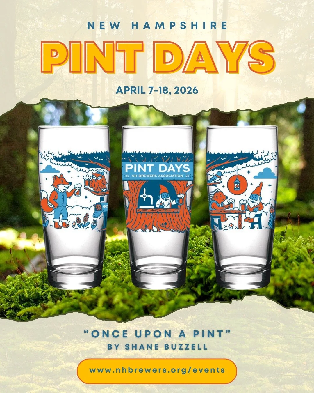 April 7th - the release of the official NHBA Pint Days glasses! This year they feature a whimsical woodland drinking scene (see below), we'd argue the best design yet. They'll be available for sale for $8 a piece, or filled with a beer for $10. (And $1.00 of each goes to the NHBA.)