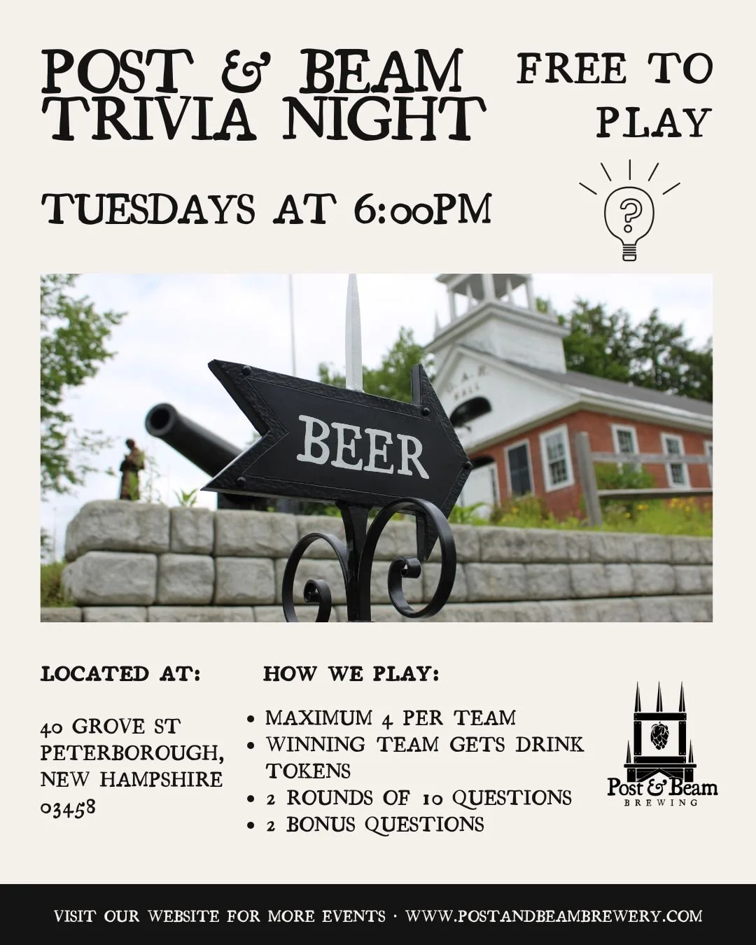 Every April, breweries and restaurants across the state put on events in support of the New Hampshire Brewers Association—the only non-profit in the state dedicated to educating, promoting, advocating for, and building community around our state’s craft beer scene. (Did you know that Erika is the president of the NHBA???) This year we're doing two special trivia nights to celebrate: